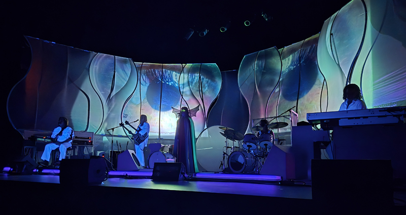 Now that I'd started paying attention again, ironically enough, they were back to playing an almost identical set to the last one I'd seen them do: 2023 marked the 50th anniversary of the release of Selling England by the Pound, so this show in late 2024 represented their very typical recreation of that tour. The show itself was just as precise and evocative as I remembered. Denis wore all the costumes, told all the stories, and strutted and mimed in all the same ways that Peter had. The stage backgrounds, slides, lighting, were all as they had been in 1973 and 1974. François/Steve was wearing the famous strawberry jacket, and Marc/Phil was sporting the white overalls of yore.